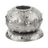 Inspired by the sea urchins of New England often found in tide pools and below the low-tide line. Made from Alpaca (a combination of copper, nickel, and zinc) with a velvet lining.