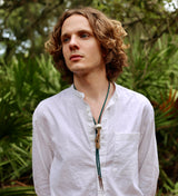 Leather strands differ in color, thickness and length, please contact our gallery for inquiries. Any custom pieces are subject to a fee.