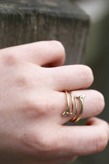 Cast from the ribs of a rattlesnake on Cumberland Island, this ring comes in 14K Gold, Sterling Silver, Two Tone (Sterling Silver and 14K Gold,) and Vermeil.